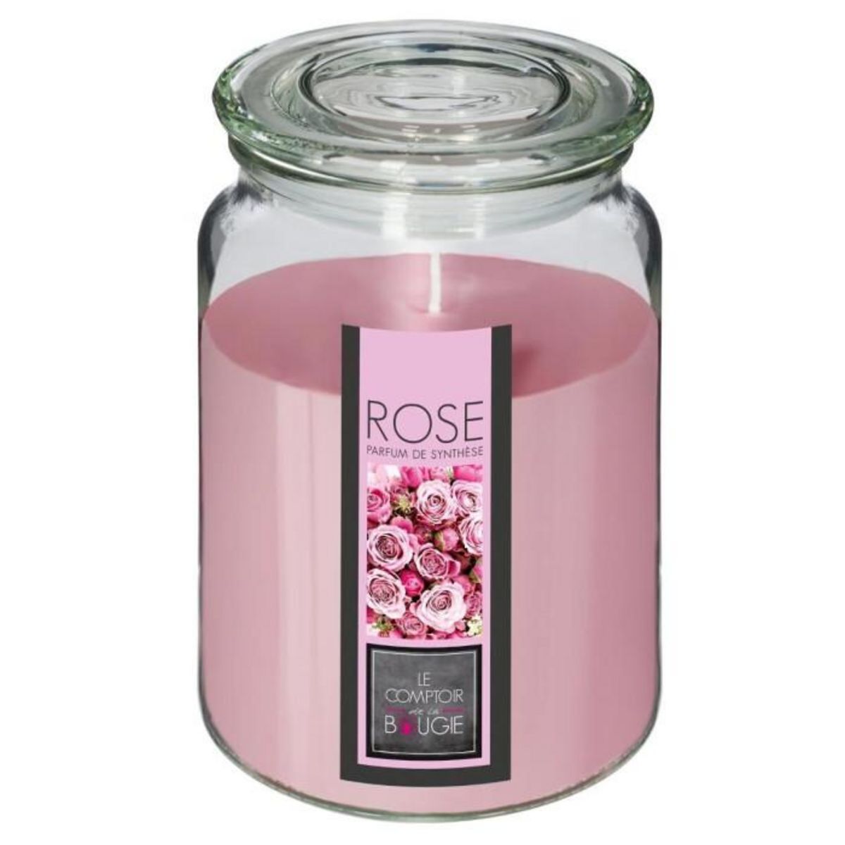 Bougie Parfumée en Verre Couvercle 510g Rose