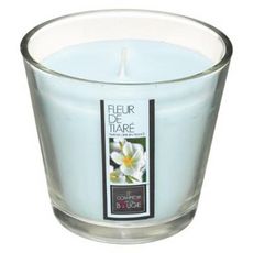 Informations Techniques : Dimensions : D. 9 x H. 8,3 cm Matières : Verre & Cire Spécificités : Tendance & Pratique Bougie Parfumée Forme Ronde Contenance : 190g Senteur : Fleur de Tiaré Facile d'Utilisation Poids : 0,370 kg Couleur : Bleu