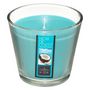 Informations Techniques : Dimensions : D. 9 x H. 8,3 cm Matières : Verre & Cire Spécificités : Tendance & Pratique Bougie Parfumée Forme Ronde Contenance : 190g Senteur : Noix de Coco Facile d'Utilisation Poids : 0,370 kg Couleur : Bleu