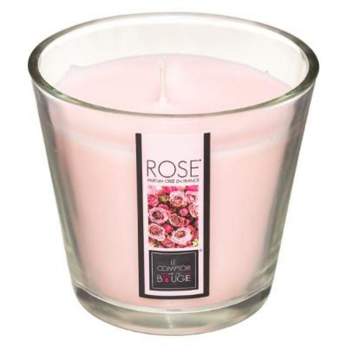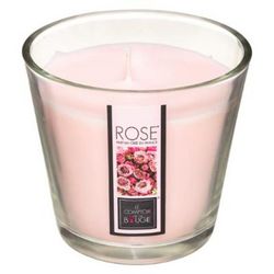 Informations Techniques : Dimensions : D. 9 x H. 8,3 cm Matières : Verre & Cire Spécificités : Tendance & Pratique Bougie Parfumée Forme Ronde Contenance : 190g Senteur : Rose Facile d'Utilisation Poids : 0,370 kg Couleur : Rose
