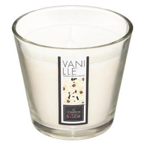 Informations Techniques : Dimensions : D. 9 x H. 8,3 cm Matières : Verre & Cire Spécificités : Tendance & Pratique Bougie Parfumée Forme Ronde Contenance : 190g Senteur : Vanille Facile d'Utilisation Poids : 0,370 kg Couleur : Blanc