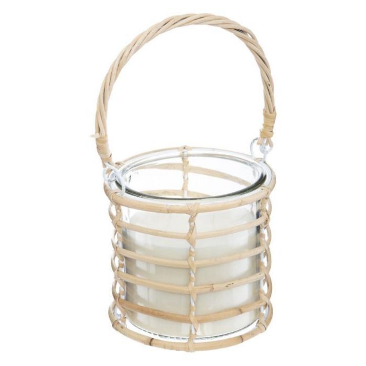 Informations Techniques : Dimensions : D. 14,5 x H. 26 cm Pot : D. 12 x H. 12 cm Matières : Cire, Verre & Rattan Spécificités : Design & Pratique Bougie parfumée avec anse Cire blanche Senteur citron Accessoire répulsif Durée de combustion : 31 heures % de citronnelle : 2% Facile d'utilisation & d'e