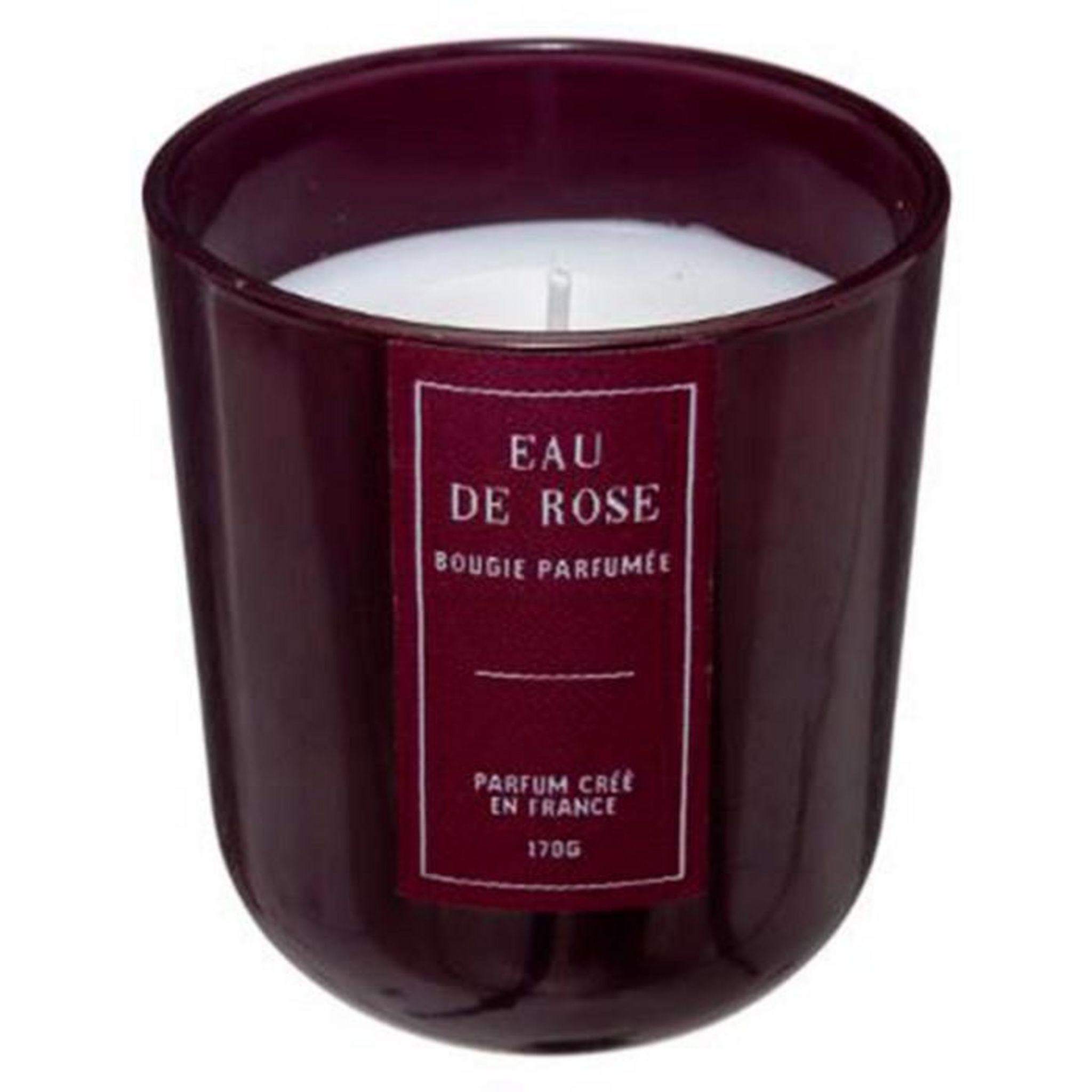 Informations Techniques : Dimensions : D. 7,8 x H. 8,5 cm Matières : Verre & Cire Spécificités : Tendance & Déco Bougie Parfumée Forme Ronde % de Parfum : 5 % Durée de Combustion : 27 heures Senteur : Eau de Rose (une senteur raffinée, florale et poudrée) Parfum créé en France Poids : 0,356 kg Coul