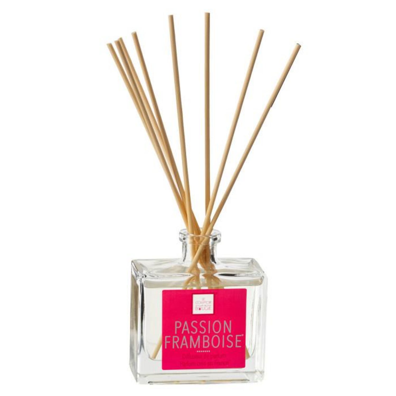 Informations Techniques : Dimensions : L. 9,5 x l. 5,6 x H. 11 cm Matières : Verre & Huile Spécificités : 8 Bâtonnets inclus Parfum : Framboise & Passion Contenance : 160ml Poids : 0,163 kg Couleur : Rouge