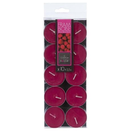 Lot de 10 Bougies Chauffe-Plat Parfumées 3,7cm Framboise