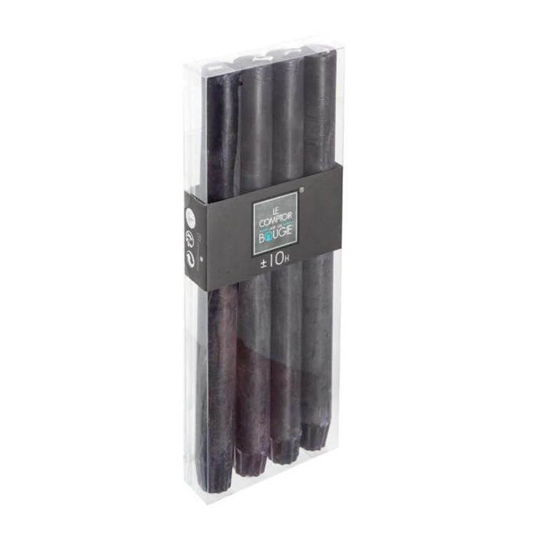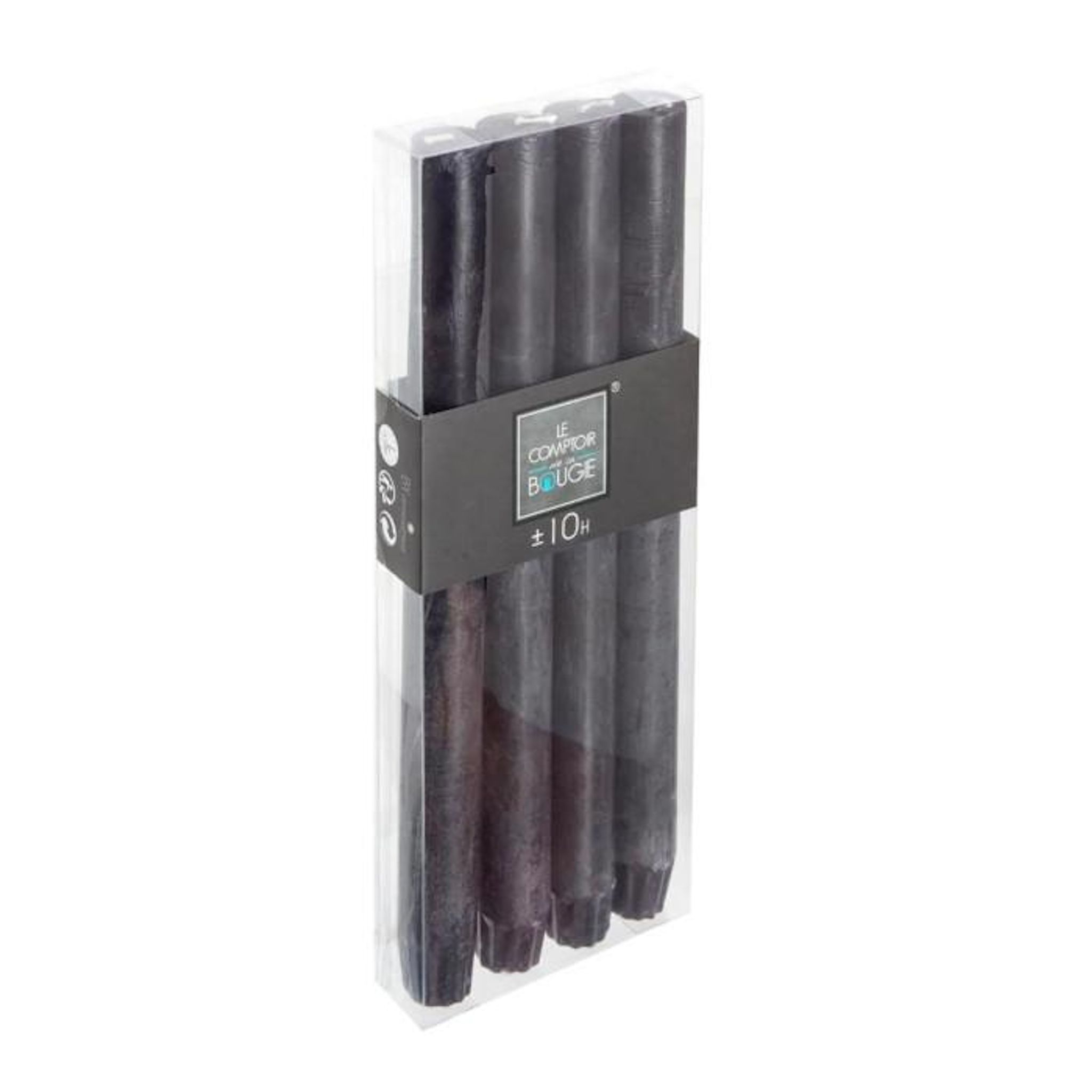 Lot de 4 Bougies Bâton Rustic 24cm Noir