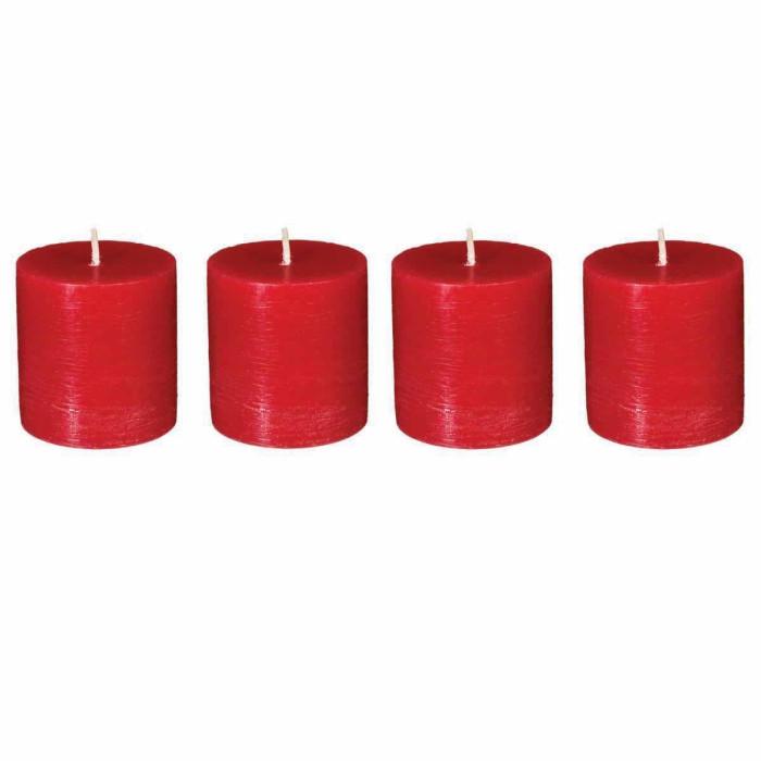 Lot de 4 Bougies Votives Rustic 4,5cm Rouge