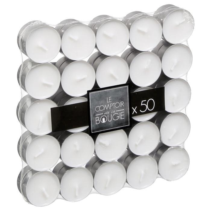 Lot de 50 Bougies Chauffe-Plat Many 3,7cm Blanc