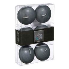 Informations Techniques : Dimensions : D. 4,5 x H. 2,5 cm Matière : Cire Spécificités : Lot de 6 Bougies Facile à poser Poids : 0,025 kg / par bougie Couleur : Gris