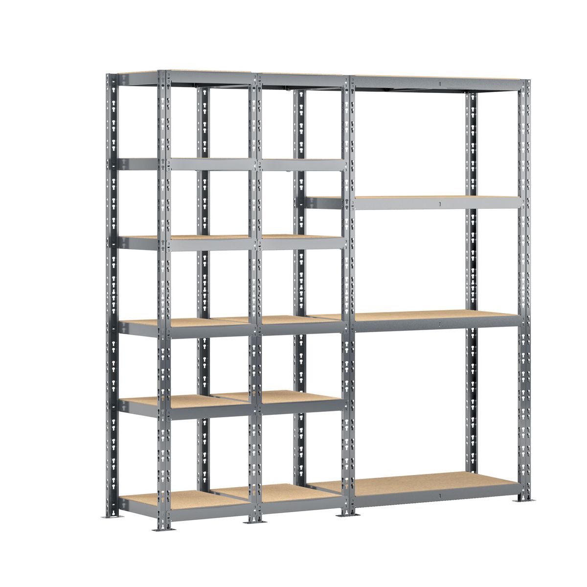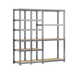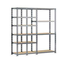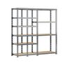 - Etagère triple charge lourde 16 plateaux longueur 200 cm comprenant 2 étagères 6 plateaux 40 x 50 x H.192 cm et une étagère charge lourde 4 plateaux 40 x 100 x H.192 cm.