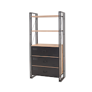 Bibliothèque industrielle avec tiroirs - bois et noir TALI