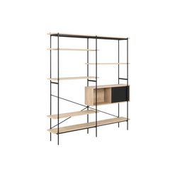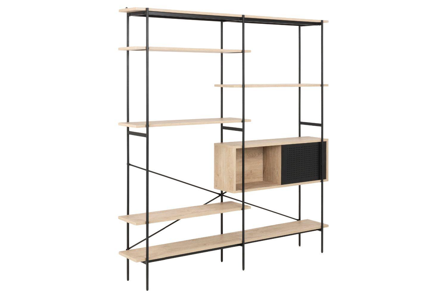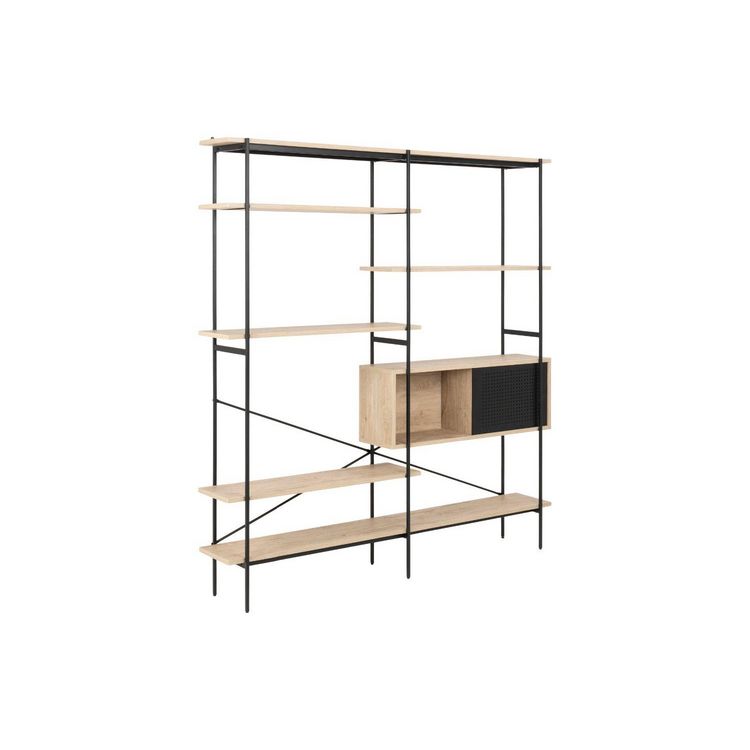 La bibliothèque au style industriel Sky avec 5 etagères et une niche avec porte coulissante apportera du rangement utile ainsi qu'une touche de modernite à votre interieur ! Sa construction en MDF finition melamine et sa structure en metal noir avec croisillon de renforcement lui offre solidite et resistance dans le temps. Discrète grâce à ses traits fins, elle n'en reste pas moins un reel atout pour toute les pièces grâce à ses nombreux rangements.