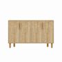 Sa structure en panneaux de particules mélaminés assure robustesse et facilité d'entretien, tandis que les pieds cylindriques apportent une belle légèreté visuelle. Ce buffet trouve aisément sa place dans un salon, une salle à manger ou une entrée, pour créer un espace de vie organisé et design.