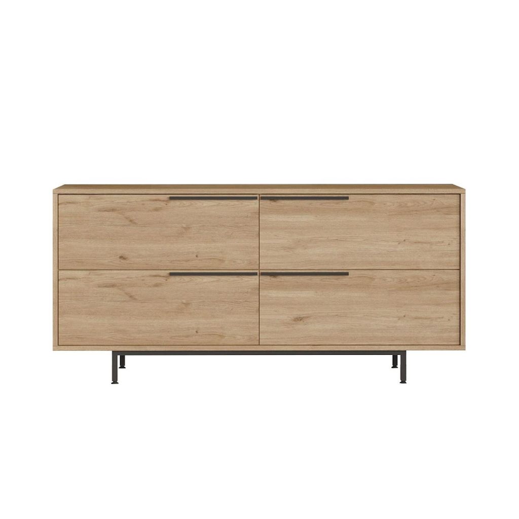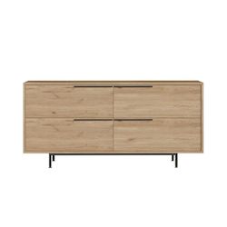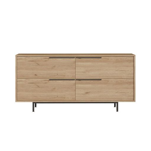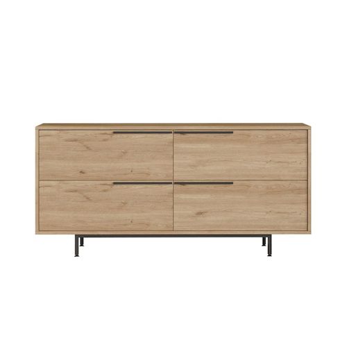 Buffet 4 portes finition bois et métal noir 160x75cm ABEY