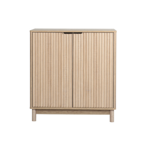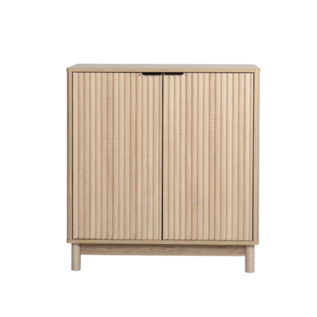 Ce buffet allie style et fonctionnalité avec son design épuré et moderne. Fabriqué en bois de haute qualité, il se distingue par ses deux portes au design gondolé unique, offrant une touche d'originalité à votre intérieur. La poignée en métal ajoute une note élégante et contemporaine, complétant parfaitement l'esthétique scandinave du meuble. Idéal pour ranger votre vaisselle, vos livres ou vos objets de décoration, ce buffet est la pièce maîtresse qui apportera chaleur et charme à votre espace de vie.