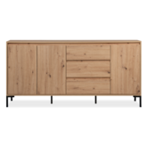 Decouvrez notre buffet en chêne Navi, une elegante fusion de couleur bois naturel et de pieds en metal noir. Dote de trois spacieux placards pour un rangement organise et de trois tiroirs pratiques, ce meuble offre une solution parfaite pour allier style et fonctionnalite dans votre espace de vie. Vous pourrez egalement disposer de nombreux objets de decoration ou plantes sur son large plateau de 170cm. Optez pour l'elegance et la polyvalence avec ce buffet exceptionnel.
