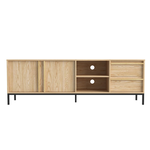 Optez pour l'organisation elegante avec notre buffet Budapest en bois de 180 cm. Dote de deux tiroirs spacieux, de placards genereux et de deux niches ouvertes, ce meuble offre un espace de rangement polyvalent pour votre espace de vie.