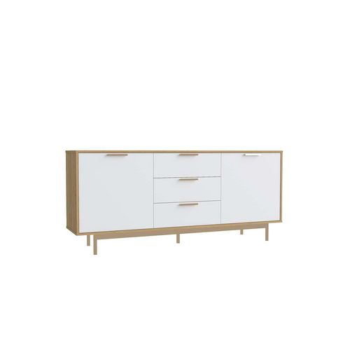 Pratique et élégant, ce grand buffet au style scandinave vous permettra de ranger vos affaires dans votre salon ou votre salle à manger. Vous pourrez y mettre votre vaisselle : vos assiettes, vos verres ou encore vos plats ou tout autre affaire qui traîne dans votre pièce de vie, comme des livres par exemple. Ce joli meuble aux finitions rose gold ravira votre intérieur en lui donnant du cachet et lui ajoutant un style scandinave et moderne !