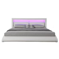 Cadre de lit en simili Blanc avec LED intégrées - 160x200cm BRIXTON