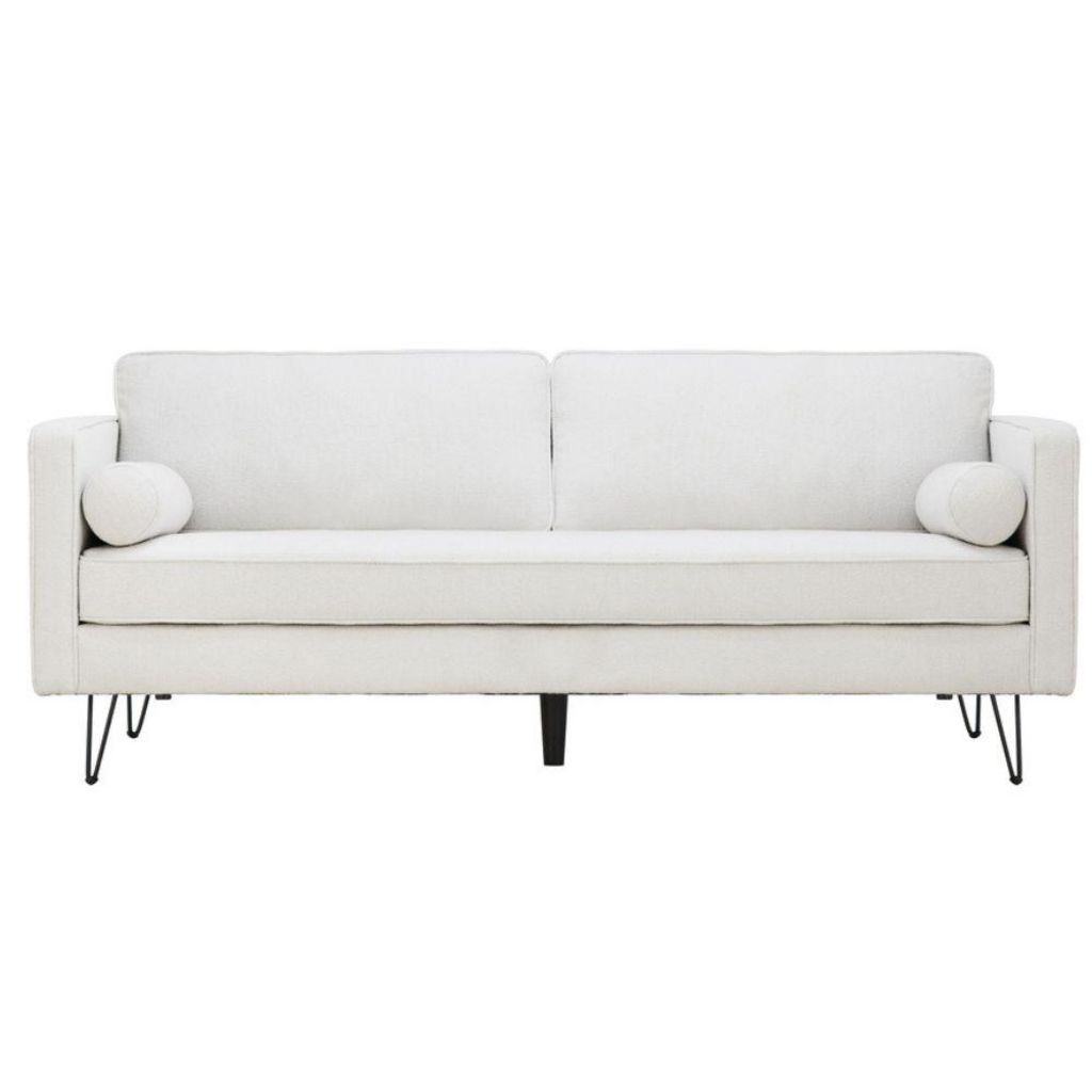 Canapé 3 places blanc bouclette et pieds métal CLOUD