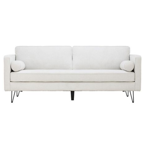 p>Craquez pour ce beau canape design en tissu bouclette blanc ! Il s'integrera parfaitement dans un salon d'inspiration nordique avec des meubles dans les tons clairs pour un interieur cocooning. Le tissu bouclette est la tendance de cet hiver, il est facile d'entretien tout en etant hyper confortable et chaleureux.Ses pieds en metal noir et sa matière douce au toucher lui confèrent egalement un certain cachet ! Les couches de mousses dans l'assise et le dossier garantissent un confort optimal. Alors n'hesitez plus et craquez pour ce joli canape super tendance !Caractéristiques techniques :