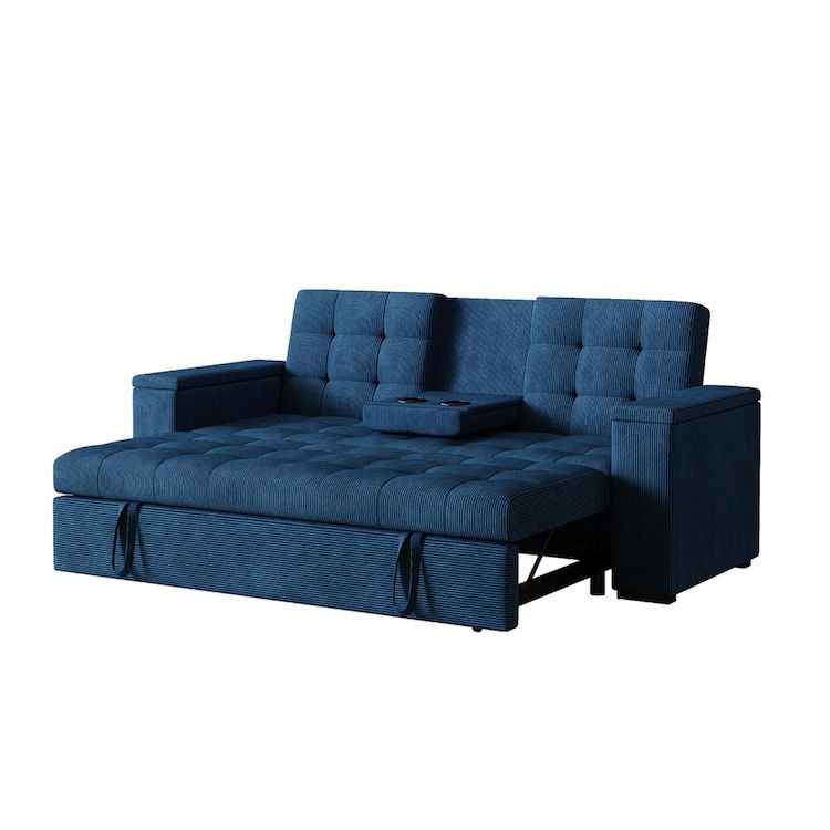 Canapé 3 places convertibles bleu velours côtelé NOHO
