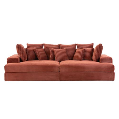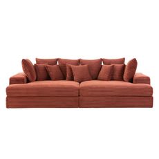 Canapé 4 places assise profonde en velours côtelé terracotta CARDIFF