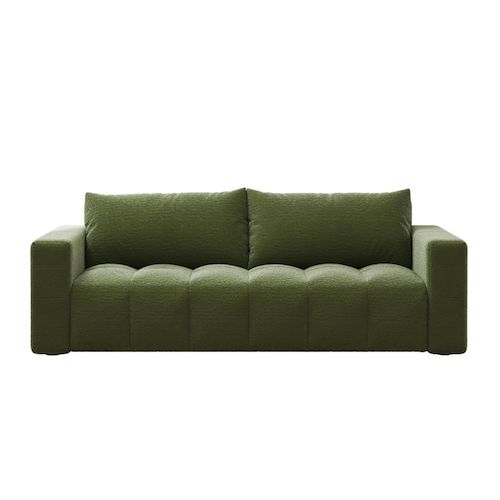 Caractéristiques techniques Nombre de places : 3 placesCouleur : VertForme : DroitType : ConvertibleDensité : FermeRevêtement : Tissu boucletteStructure : Bois massif d'eucalyptus et panneaux de particulesGarnissage : Double épaisseur mousse 50 kg/m3 et 25 kg/m3 + ouate 150 g/m3Suspensions assise :