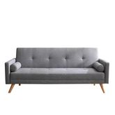 Ce canapé apportera un style indeniable à votre interieur. Perche sur ses pieds fuseaux obliques en bois, il se distingue par sa silhouette et son dossier capitonne.