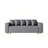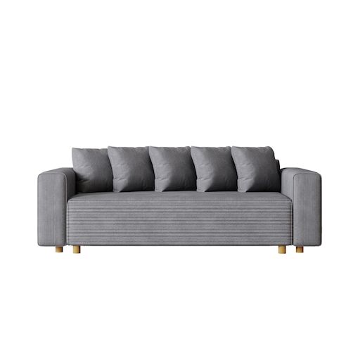 Caractéristiques techniques Nombre de places : 3Couleur : GrisForme : DroitType : ConvertibleDensité : FermeRevêtement : Velours côteléAvec coussins : Oui, 5 coussinsStructure : Bois massif d'eucalyptus et panneaux de particulesPiètement : Bois massif d'hévéaGarnissage : Double épaisseur mousse haut