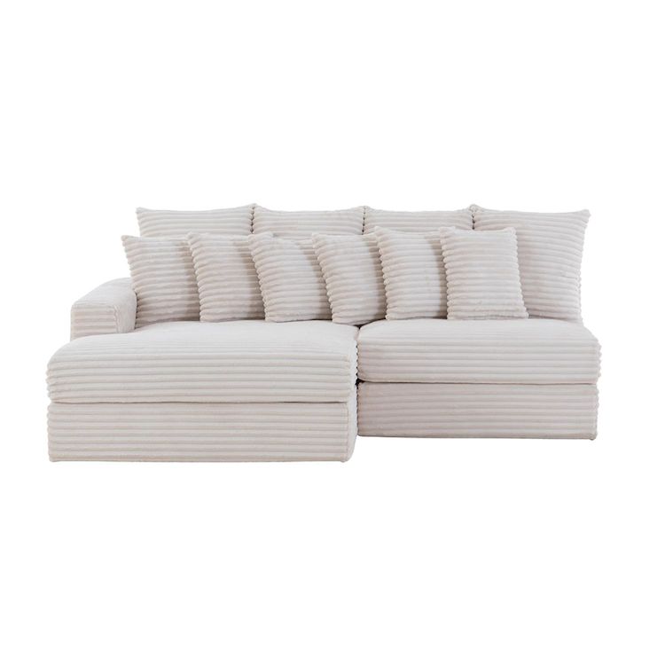 Canapé d'angle 2-3 places assise profonde en velours côtelé beige CARDIFF