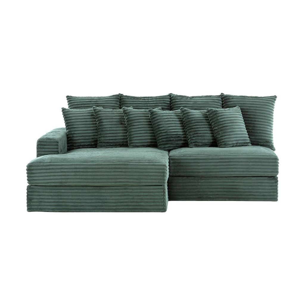 Canapé d'angle 2-3 places assise profonde en velours côtelé vert CARDIFF