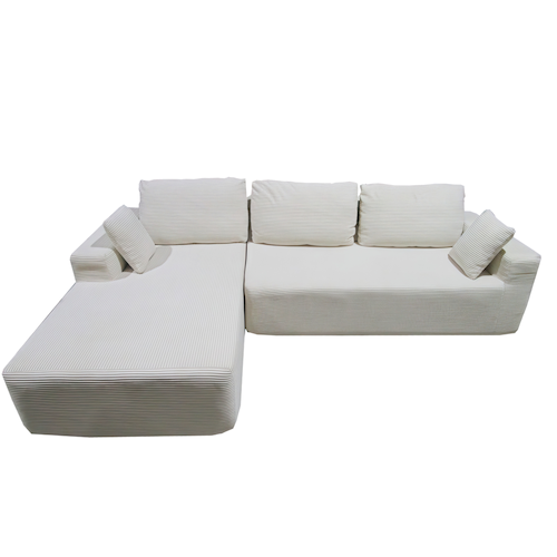 Caractéristiques techniques Nombre de places : 3 placesCouleur : BeigeForme : AngleMéridienne : GaucheType : FixeRevêtement : Velours côteléGarnissage : Double épaisseur mousse 32 kg/m3 et 60 kg/m3Surface d'assise : Coton 15 kg/m3EntretienPour préserver la beauté du velours, utilisez un chiffon doux
