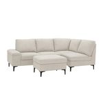 Canapé d'angle 4-5 places en tissu chenille beige avec pouf COLCHESTER