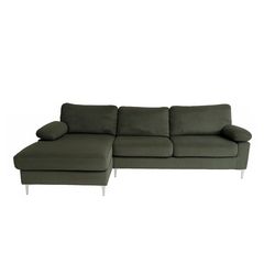 Caractéristiques techniques Nombre de places : 4/5Couleur : VertForme : Angle gaucheType : FixeRevêtement : Velours côteléPiètement : Métal et plastiqueStructure : Cadre en bois avec tissuTissu : Polyester 900 gSuspensions : Ressorts zig-zagDensité : 28 kg/m3Angle modulable : non EntretienPour conse