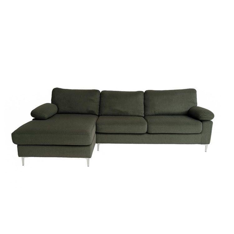 Canapé d'angle 4-5 places méridienne gauche velours côtelé vert GALWAY