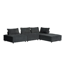 Caractéristiques techniques Couleur principale : Gris foncé Nombre de places : 4 places Revêtement : Velours texturé Matière de la structure : Panneaux de contreplaqué + bois massif Piètement : Plastique Nombre de pieds : 16 Rembourrage de l'assise : Mousse recyclée 24D + Mousse 22D Suspensions de