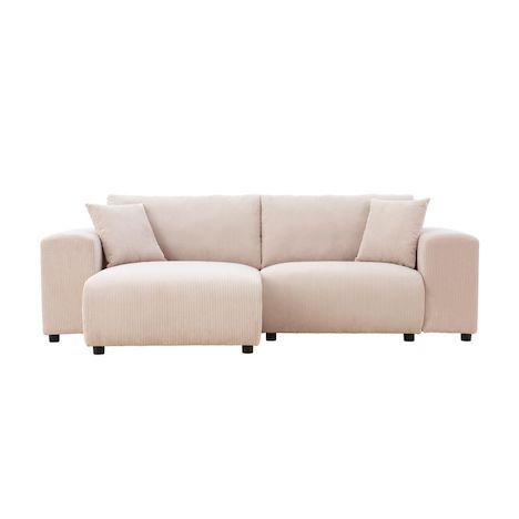 Canapé d'angle modulable 3 places en velours côtelé beige ABERDEEN