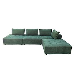 Canapé d'angle modulable 4 places en velours texturé vert STAVA