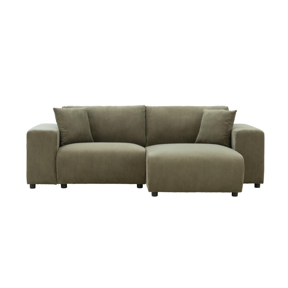 Caractéristiques techniques Nombre de places : 3Couleur : VertForme : AngleMéridienne : Droite ou gaucheType : ModulableDensité : Mi-fermeRevêtement : Velours côteléAvec coussins : Oui, 2 coussinsStructure : Bois massif d'eucalyptus et panneaux de particulesPiètement : Bois massif d'hévéaGarnissage