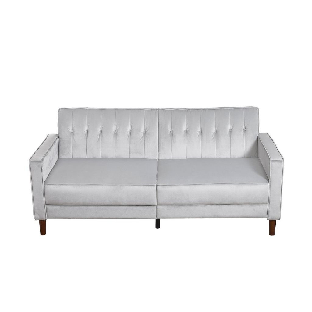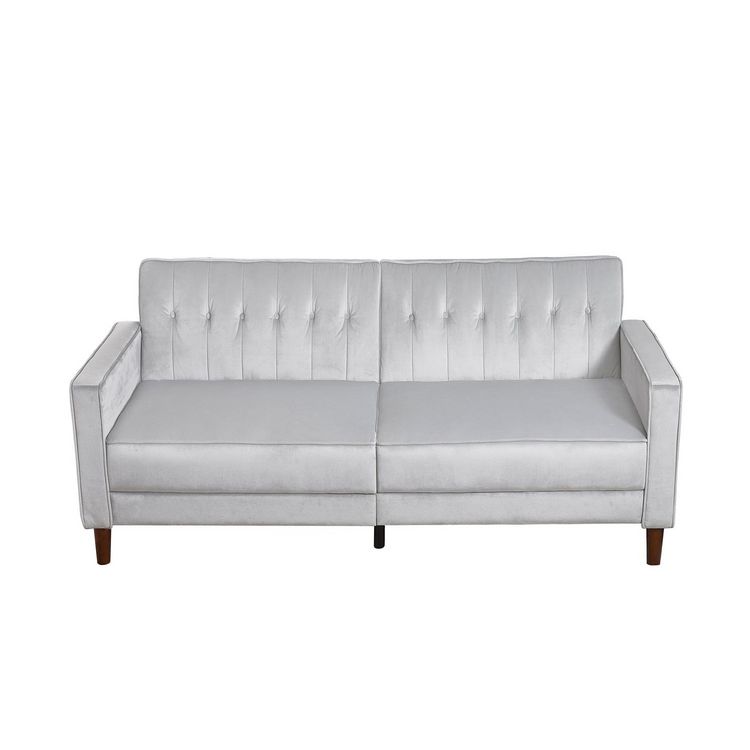 En savoir +Le canape convertible 3 places en velours gris avec pieds en bois est un meuble elegant et fonctionnel qui offre à la fois confort et style à votre espace de vie.Le canape presente un design moderne et epure, avec des lignes droites et une silhouette elegante. Son revêtement en velours gris lui confère une allure chic et tendance, parfait pour s'adapter à differents styles de decoration interieure.