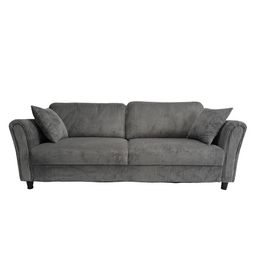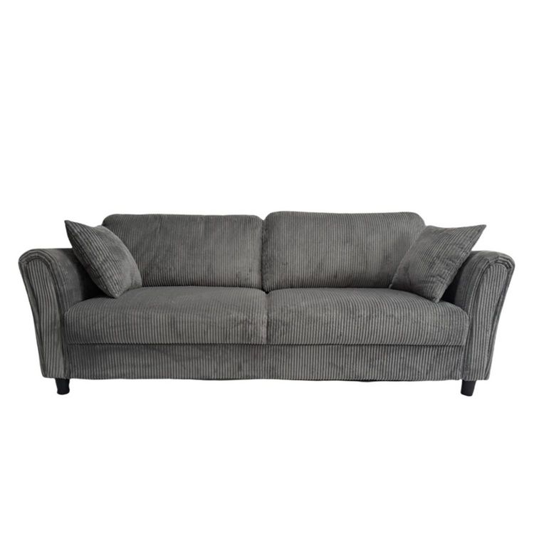 Canapé droit 4 places en velours côtelé gris foncé LUCERNE