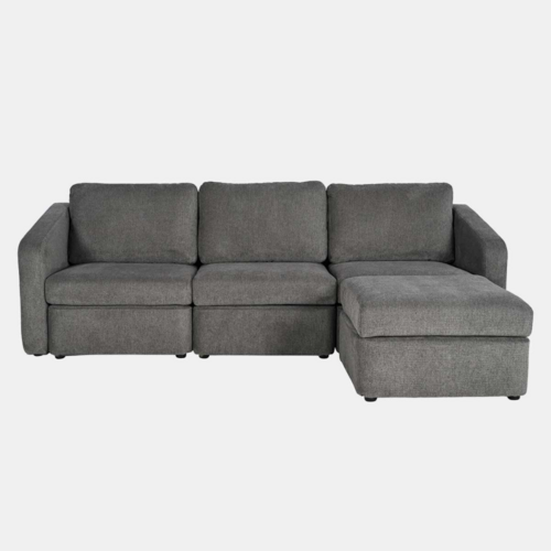 Canapé modulable 3 places gris foncé avec pouf KONEKT