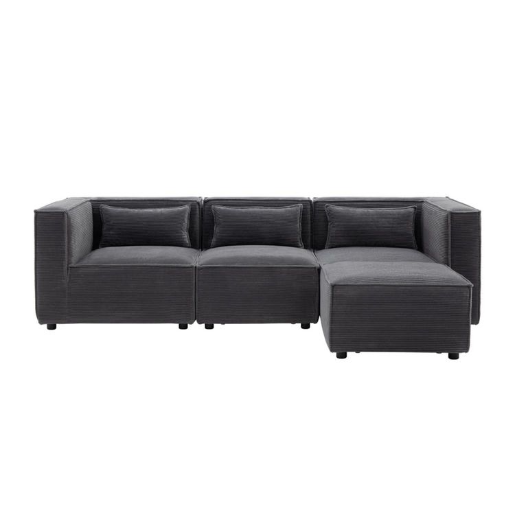 Canapé modulable 3 places velours côtelé gris avec pouf MODULAR