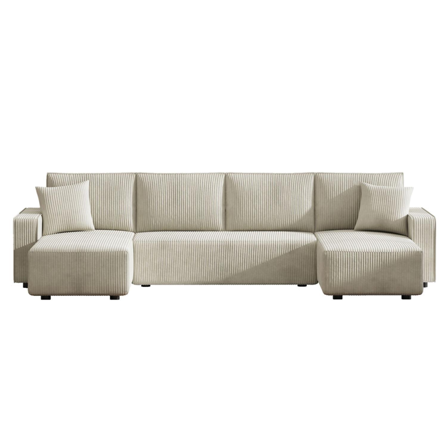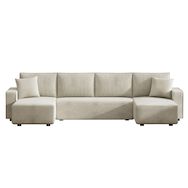 Canapé panoramique convertible 6 places avec coffre en velours côtelé beige SALISBURY