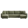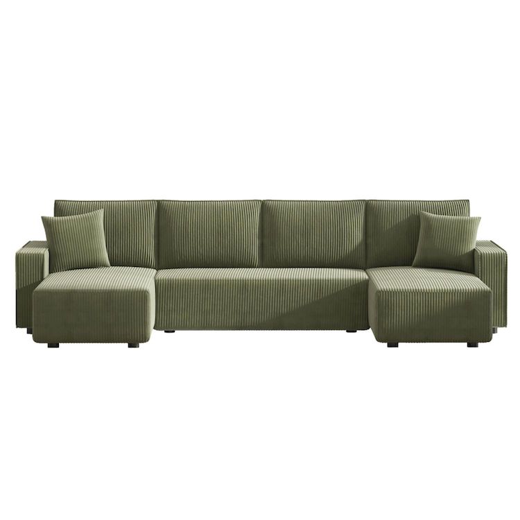 Canapé panoramique convertible 6 places avec coffre en velours côtelé vert SALISBURY