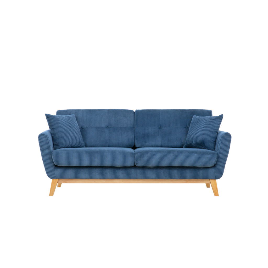Canapé scandinave 3 places en velours côtelé bleu HOGA