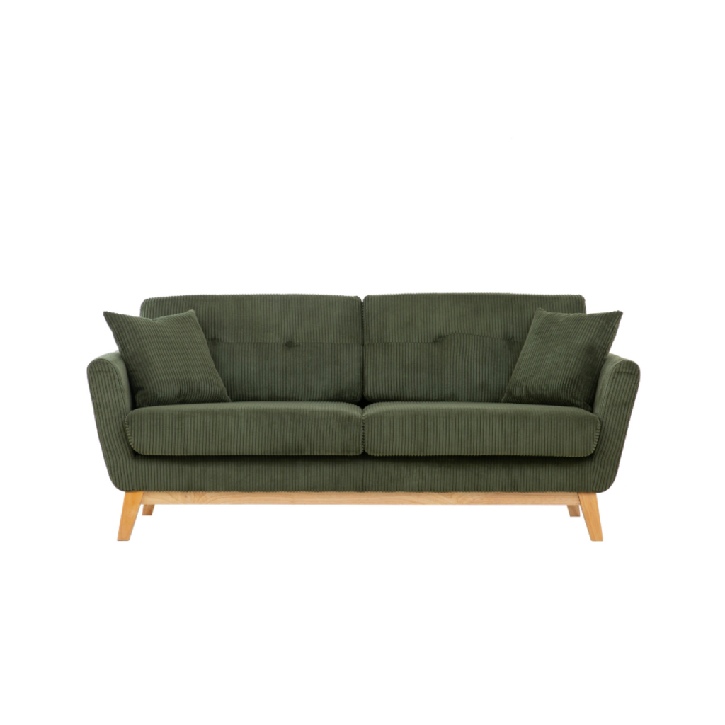 Canapé scandinave 3 places en velours côtelé vert HOGA