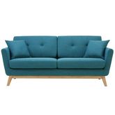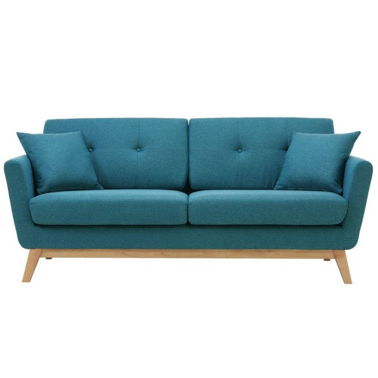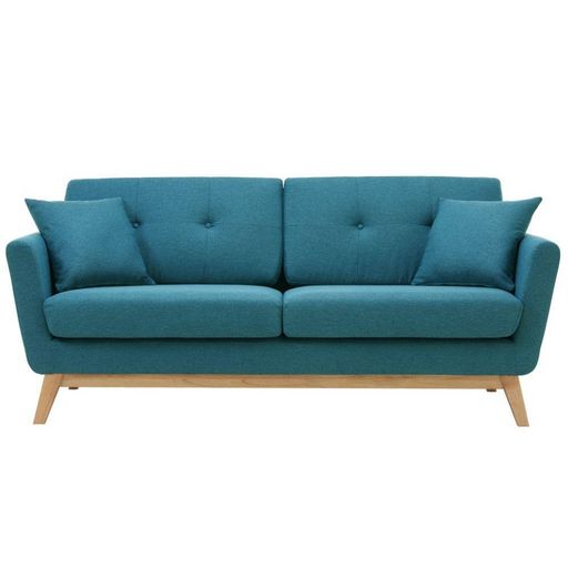Canapé scandinave 3 places et 2 coussins en tissu bleu canard HOGA