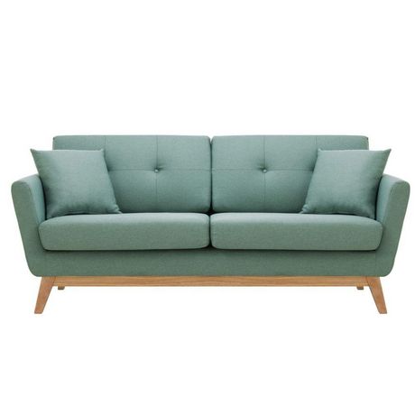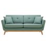 Canapé scandinave 3 places et 2 coussins en tissu vert d'eau HOGA